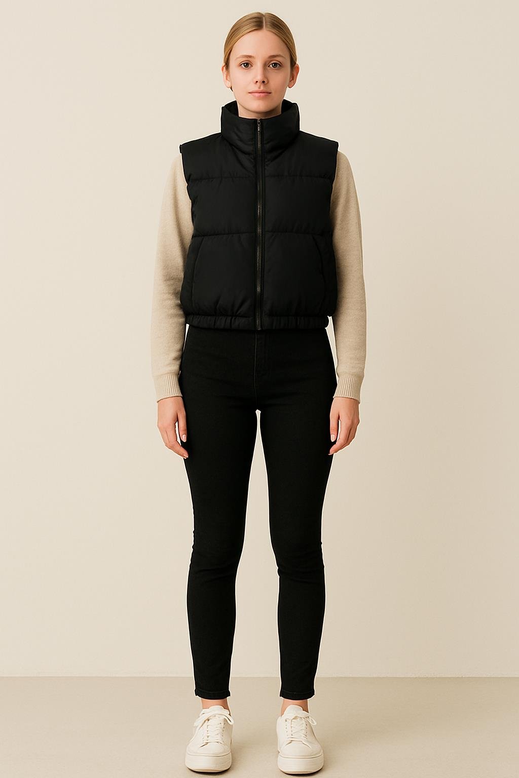 Kumaş: Suya dayanıklı dış kumaş Dolgu: Hafif elyaf dolgulu Yaka: Dik yaka Cep: Yan cepler Kapatma: Fermuarlı ön kapama Kalıp: Rahat ve standart kesim Tarz: Günlük, spor ve şehir stili Kombin Önerisi: Siyah pantolon ve beyaz sweatshirt ile sade ama modern bir görünüm oluşturabilir, spor ayakkabılarla tamamlayabilirsiniz. Spor ve şık tarzı bir araya getiren gri şişme yelek, hafif yapısı sayesinde maksimum konfor sunar. Soğuk havalarda kazak veya sweatshirtlerle rahatça kombinlenebilir.