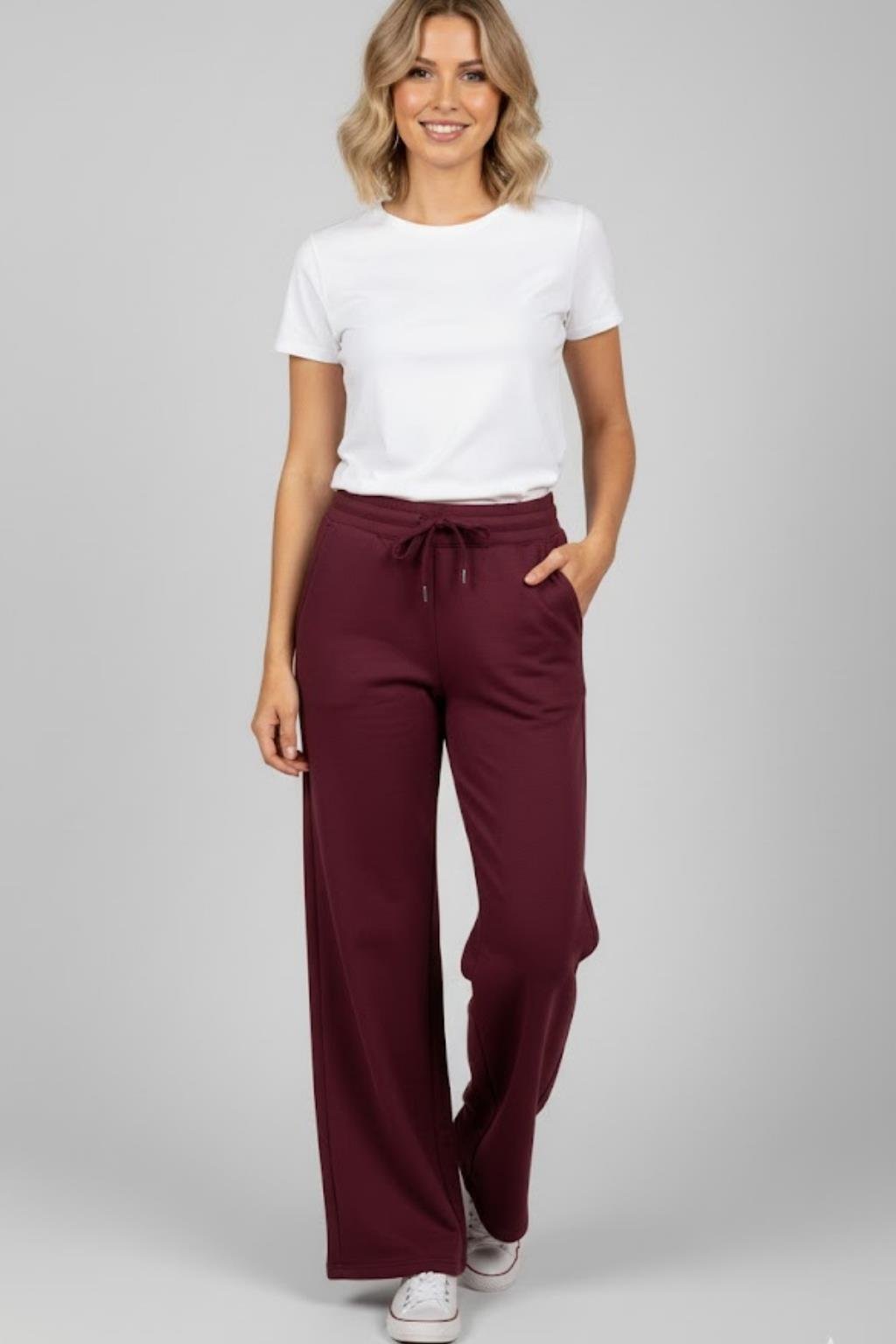 Kumaş: Pamuklu, esnek dokulu kumaş Kalıp: Geniş paça (wide leg) rahat kesim Bel: Lastikli ve ayarlanabilir bağcıklı Cep: Yan cepler Tarz: Spor, günlük ve casual kombinler için uygun Kombin Önerisi: Basic tişörtler veya crop sweatshirtlerle kombinleyerek modern bir rahatlık yakalayabilirsin. Rahat kesimi ve yumuşak kumaşıyla öne çıkan bordo eşofman altı, hem spor tarzlarda hem de günlük kombinlerde konforu şıklıkla buluşturur.