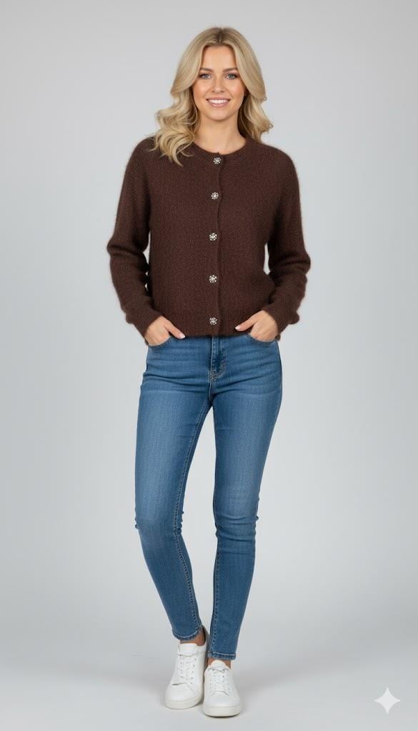 Kadın Düğmeli Yumuşak Triko Hırka M7361K26 Kahve