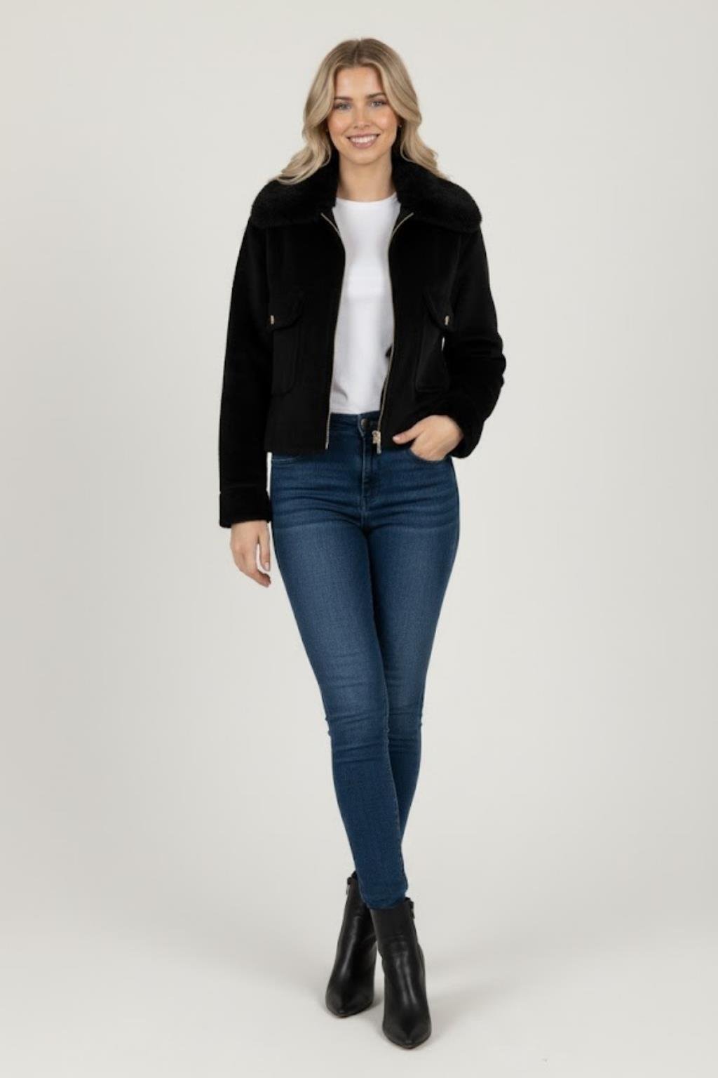 Kadın Kürk Yaka Detaylı Kısa Fox Mont M4870 Siyah