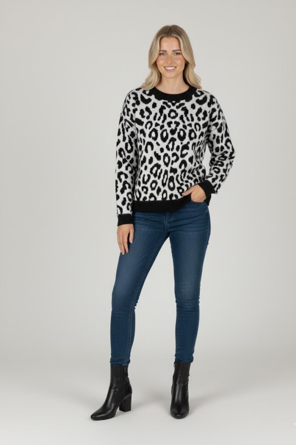 Kadın Leopar Desenli Triko Kazak M6702 Leopar Kadın Leopar Desenli Triko Kazak M6702 Siyah