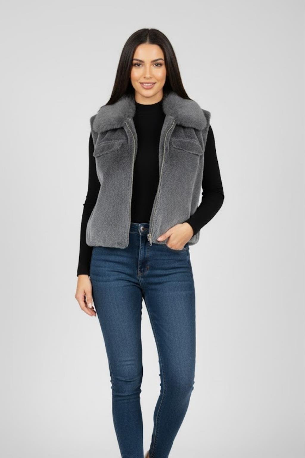 Kadın Peluş Yelek M4817 Gri
