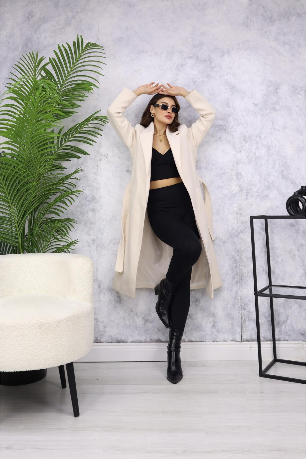 Model: Uzun kaşe kaban Yaka: Klasik yaka tasarımı Kapatma: Belden bağlamalı kemer Cep: Yan cepli tasarım Kalıp: Rahat ve zarif kesim Kumaş: Kalın, sıcak tutan kaşe kumaş Kullanım Alanı: Günlük kullanım, ofis şıklığı ve özel davetler Tarz: Modern, klasik ve şık görünüm Zarif tasarımıyla dikkat çeken bej kaşe kaban, kemer detayı ile vücut hatlarını şık bir şekilde ortaya çıkarır. Günlük ve özel kombinler için ideal.
