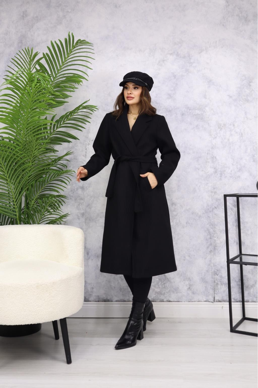 Kemerli Kaşe Kaban M3382 Siyah