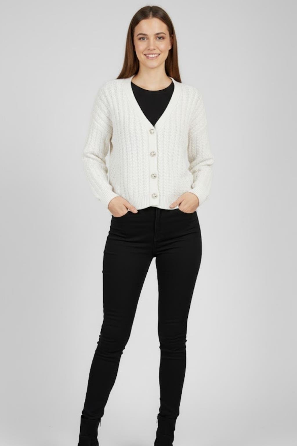 Metal Düğmeli Örgü Hırka M478K26 Taş