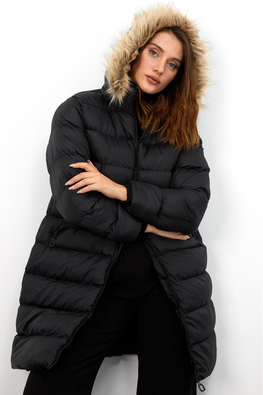 Uzun Kapşonlu Şişme Mont M001 Siyah