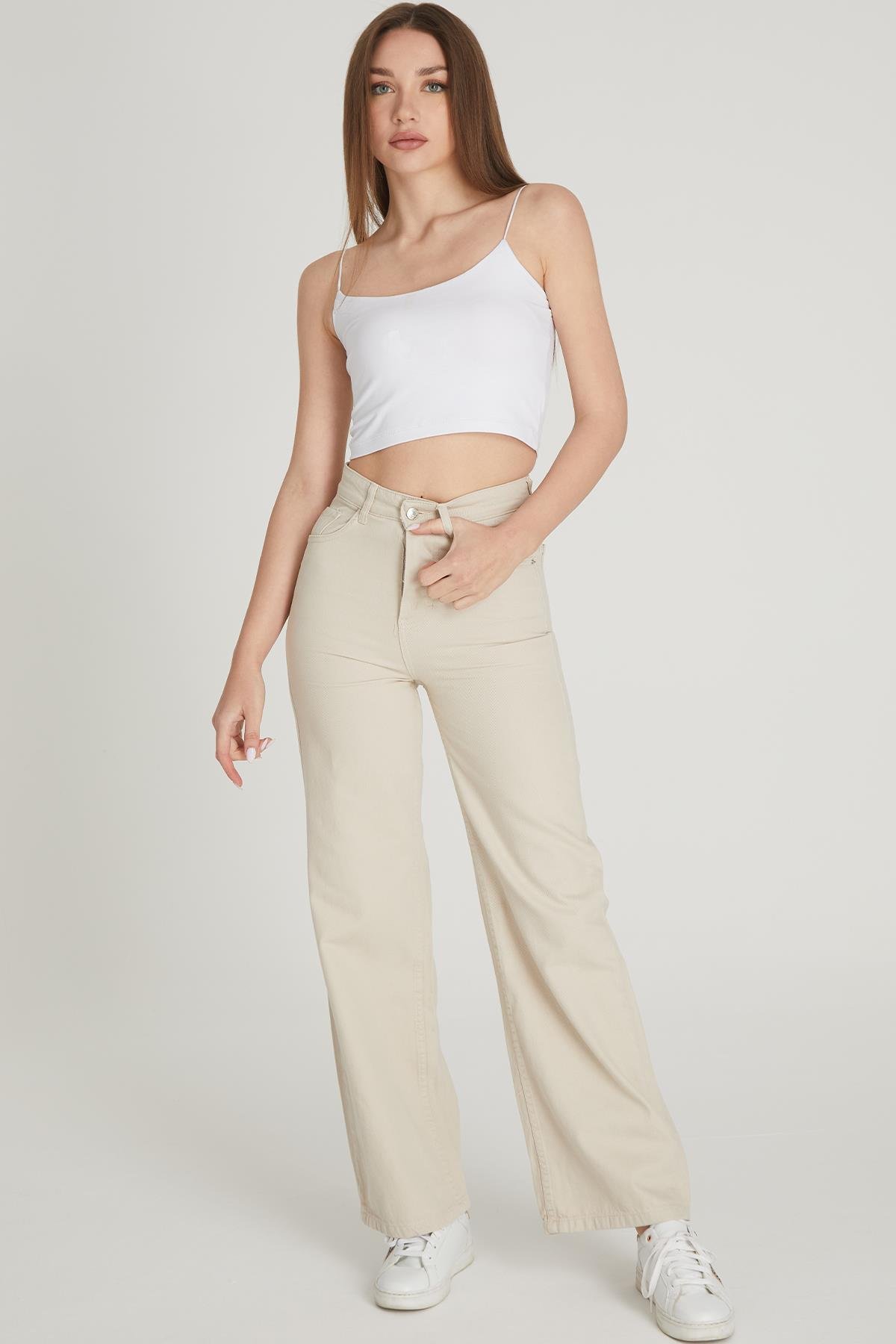 Yüksek Bel Palazzo Pantolon 1232 Bej